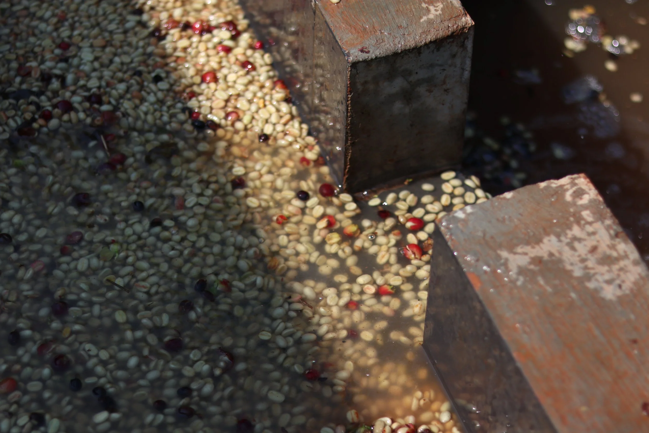 From the coffee fermentation tanks, the beans are moved to drying patios and dried to 11-12% moisture content.